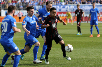 Fabian (Eintracht Frankfurt) setzt sich hier durch gegen Marcel Heller, Peter Niemeyer, und Jerome Gondorf (SV98)