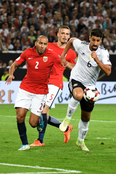 Mario Gomez (GER) erzielt das 6:0, Gustav Valsvik (NOR), Jorgen Skjelvik (NOR), Sami Khedira (GER).