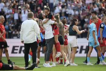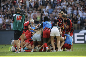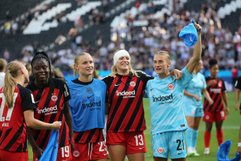 Jubel nach dem Weiterkommen u.a. Nicole Anyomi (19, Eintracht Frankfurt Frauen), Virginia Kirchberger (13, Eintracht Frankfurt Frauen),