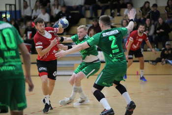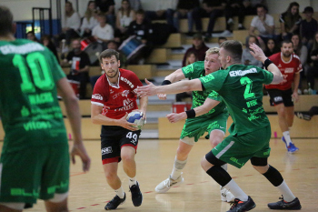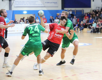 Timo Kaiser (44, Bürgel) gegen Hannes Iffert (2, Gensungen) und Janis Kothe (39, Gensungen)
