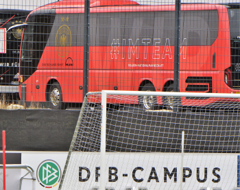 22.03.2023 Frankfurt am Main, DFB-Campus DFB A-Nationalmannschaft der Männer Symbolbild Der Bus der Frauennationalmannschaft am DFB-Campus ********* Foto: Peter Hartenfelser