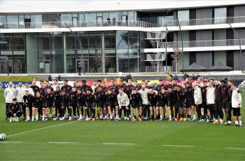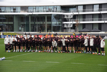 22.03.2023 Frankfurt am Main, DFB-Campus DFB A-Nationalmannschaft der Männer Die DFB A-Nationalmannschaft um Trainer Hansi Flick und die U21-Nationalmannschaft um Trainer Antonio Di Salvo versammlten sich zum gemeinsamen Mannschaftsbild ********* Foto: Peter Hartenfelser