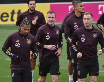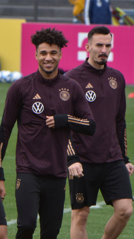 22.03.2023 Frankfurt am Main, DFB-Campus DFB A-Nationalmannschaft der Männer Training vorne weg Serge Grabry, Mario Götze, David Raum ********* Foto: Peter Hartenfelser