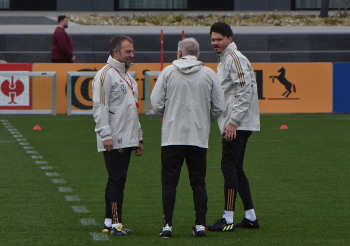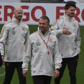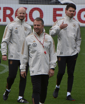 22.03.2023 Frankfurt am Main, DFB-Campus DFB A-Nationalmannschaft der Männer Training Bundestrainer Hansi Flick und Assistenztrainer Marcus Sorg hier mit "eventuell" Hermann Gerland? ********* Foto: Peter Hartenfelser