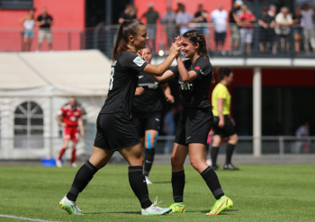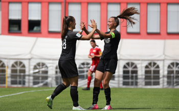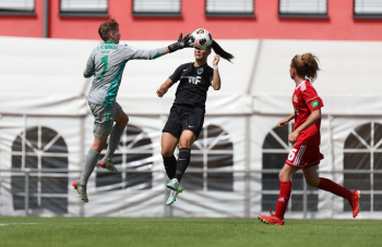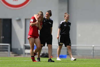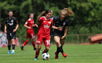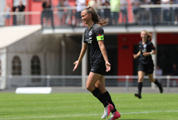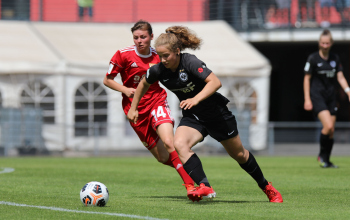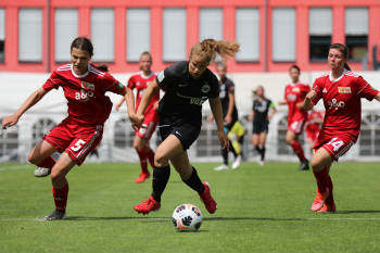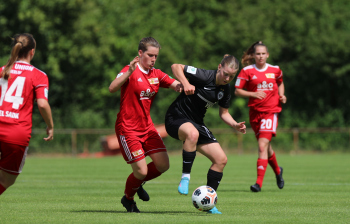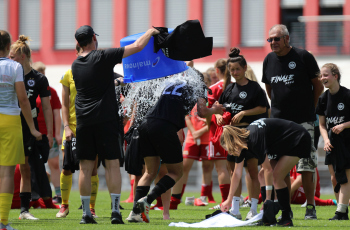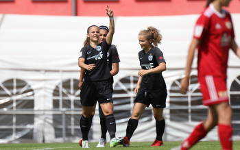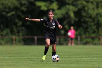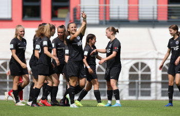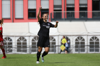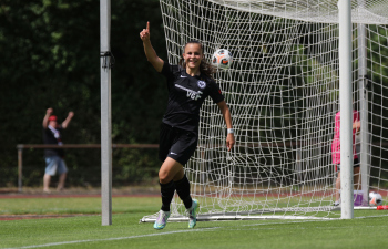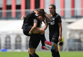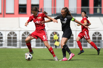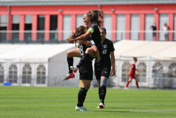 18.06.2022, xcex, GER, Frankfurt am Main, Riederwald Stadion, Frauenfussball, B-Juniorinnen Meisterschaft, 1. Halbfinale, Saison 2021/2022, Eintracht Frankfurt U17 - 1. FC Union Berlin, Torjubel Eintracht Frankfurt, Jubel, Freude, Emotionen, goal celebration, Sarah Wiesner (SGE)