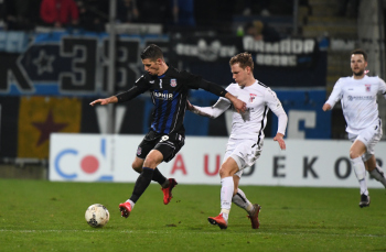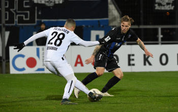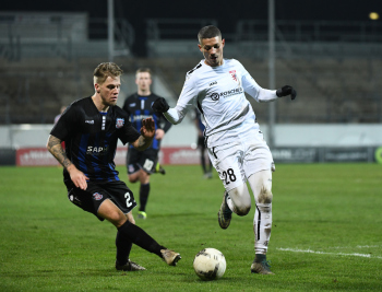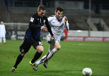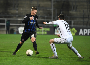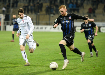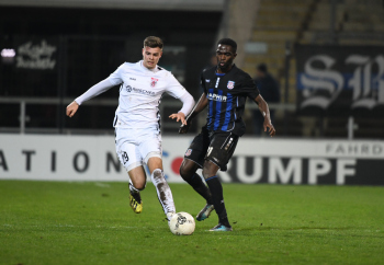 06.03.2020 xstux Frankfurt Regionalliga Südwest Saison 2019/2020 FSV Frankfurt - FC Gießen v.l. Johannes Hofmann (Gießen), Denis Mangafic (FSV) *** Foto: Peter Hartenfelser