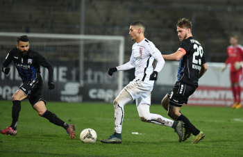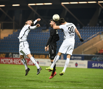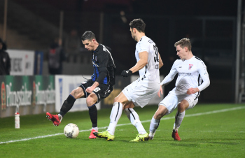 06.03.2020 xstux Frankfurt Regionalliga Südwest Saison 2019/2020 FSV Frankfurt - FC Gießen v.l. Denis Mangafic (FSV), Samir Benamar (Gießen), Dominik Nothnagel (FSV) *** Foto: Peter Hartenfelser