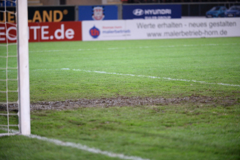 06.03.2020 xstux Frankfurt Regionalliga Südwest Saison 2019/2020 FSV Frankfurt - FC Gießen v.l. schlechte Platzverhältnisse im Torraum *** Foto: Peter Hartenfelser