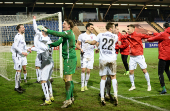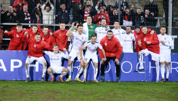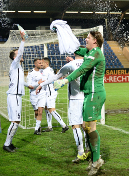 06.03.2020 xstux Frankfurt Regionalliga Südwest Saison 2019/2020 FSV Frankfurt - FC Gießen v.l. Jubel FC Gießen *** Foto: Peter Hartenfelser