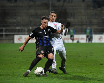06.03.2020 xstux Frankfurt Regionalliga Südwest Saison 2019/2020 FSV Frankfurt - FC Gießen v.l. Timo Kunert (FSV), Samir Benamar (Gießen) *** Foto: Peter Hartenfelser