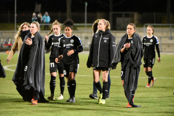 Enttäuschung u.a. bei Prießen, Marith (13, FFC Frankfurt), Sophia Kleinherne (FFC Frankfurt),Laura Freigang (10, FFC Frankfurt) Laura Feiersinger (27, FFC Frankfurt)