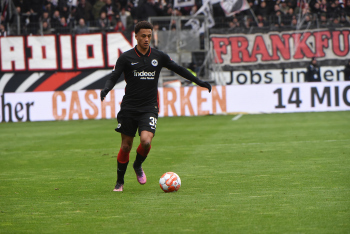 Tuta Lucas Silva Melo (Eintracht Frankfurt) gegen Jetro Willems (15, Greuther Fürth), Ansgar Knauff (36, Eintracht Frankfurt)
