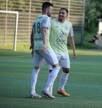 freuen sich über das Tor zum 1:0 Denis Streker (18, SV Pars Neu-Isenburg) und Anis Nassif (19, SV Pars Neu-Isenburg)