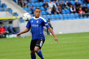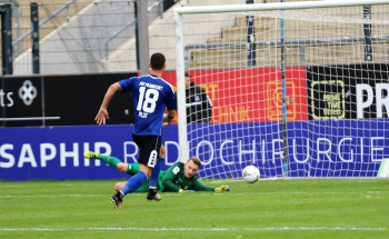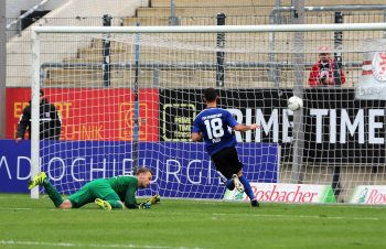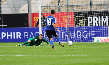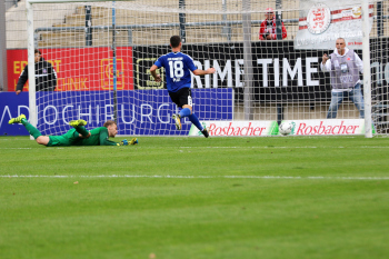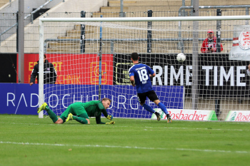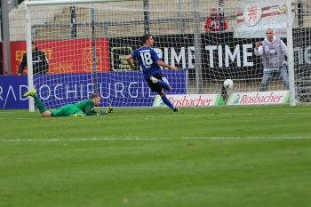 Tor zum 2:0 durch Djengoue, Nestor (21, FSV Frankfurt), Szimayer Sebastian (9, KSV Hessen Kassel) kann es nicht verhindern