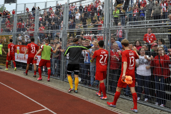 Danke an die Fans hier von Markus M?ller und anderen Spielern am Zaun