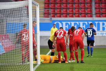 Der FSV Frankfurt u.a. Robert Schick (15, FSV Frankfurt), Anacic, Mateo (6, FSV Frankfurt), Djengoue, Nestor (21, FSV Frankfurt) jubelt ?ber die F?hrung