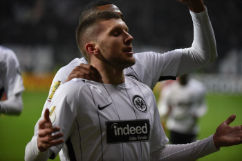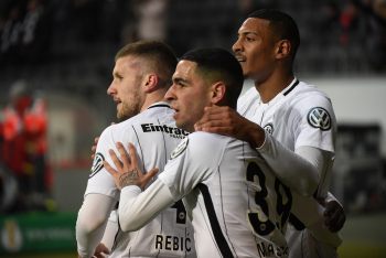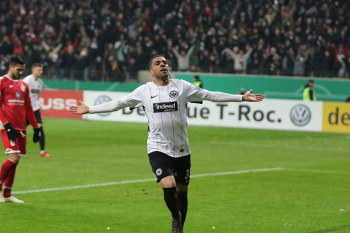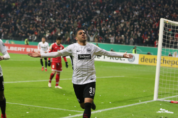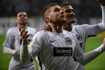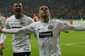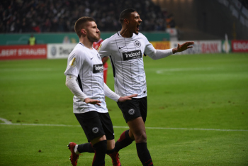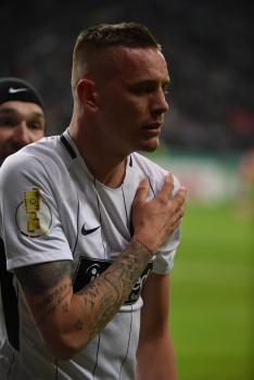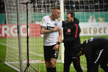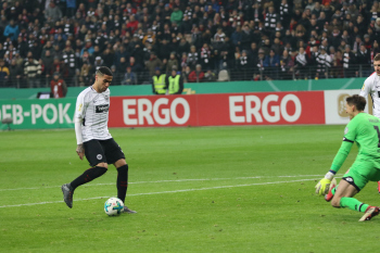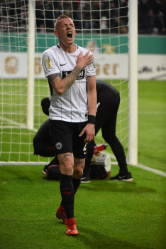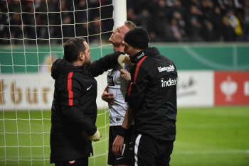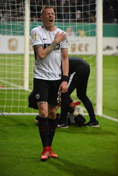 der sich dabei verletzt und Ante Rebic (4, Eintracht Frankfurt) zieht ab und erzielt das Tor zum 1:0