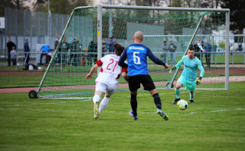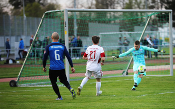 Philipp Traut (21, Seligenstadt) gegen MARCEL REMIE MUHADZERI (6, Rosenhöhe) im Tor Nicolas Manuel Läpple (22, Rosenhöhe)