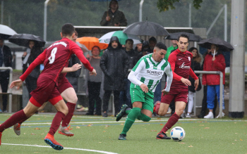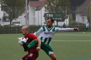 06.10.2019, xmgoodx Neu-Isenburg, Buchenbusch KOL KOL Saison 2019/2020 TSG Neu-Isenburg - Spvgg. 03 Neu-Isenburg II Andre Christian Laux (03) gegen Fayssal Chihab (TSG) ****** Foto: Peter Hartenfelser