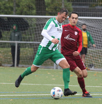 06.10.2019, xmgoodx Neu-Isenburg, Buchenbusch KOL KOL Saison 2019/2020 TSG Neu-Isenburg - Spvgg. 03 Neu-Isenburg II Andre Christian Laux (03) gegen Marius Titsch Rivero (TSG) ****** Foto: Peter Hartenfelser