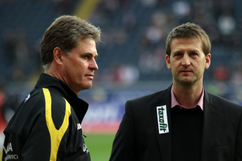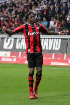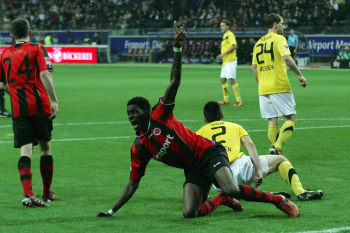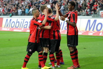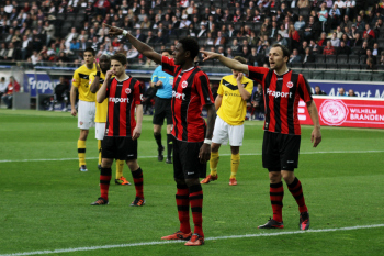 Sebastian Jung, Sebastian Rode, Mohamadou Idrissou, Erwin Hoffer (Eintracht Frankfurt) abklatschen