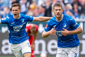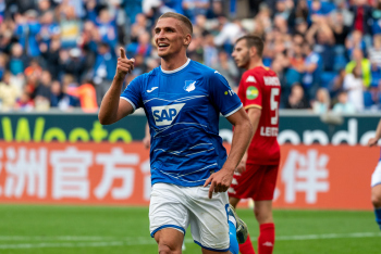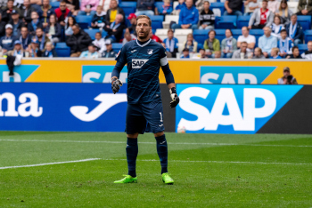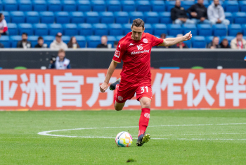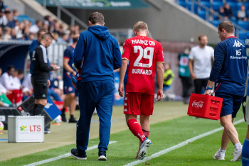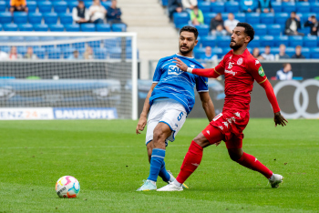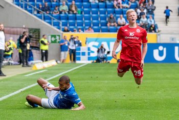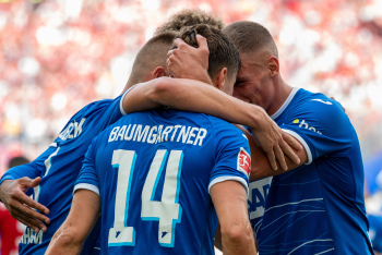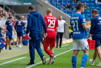 Leandro Barreiro Martins (#8), Alexander Hack (#42), Torwart Robin Zentner (1.FSV Mainz 05) und Christoph Baumgartner (TSG 1899 Hoffenheim) .