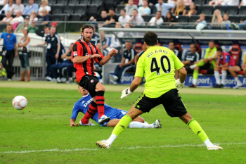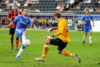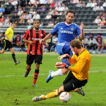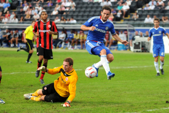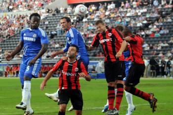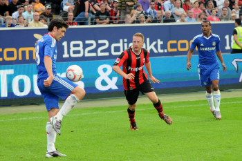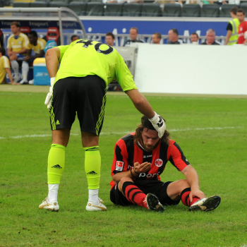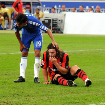 01.08..2010, 1. Bundesliga, Testspiel Eintracht Frankfurt vs FC Chelsea (Englands Meister), Ioannis Amanatidis (Eintracht Frankfurt) am Mund verletzt, Trost von Paulo Ferreira (Chelsea)