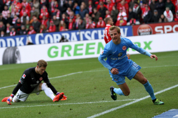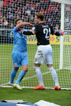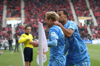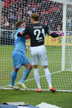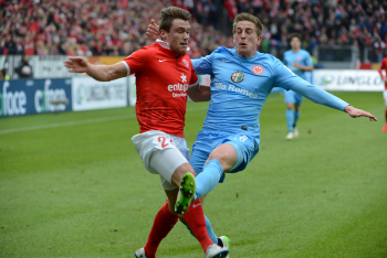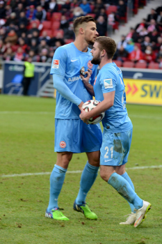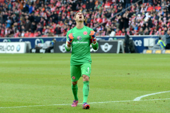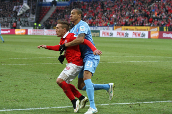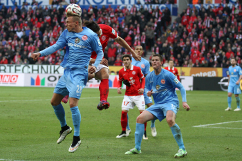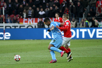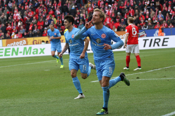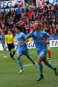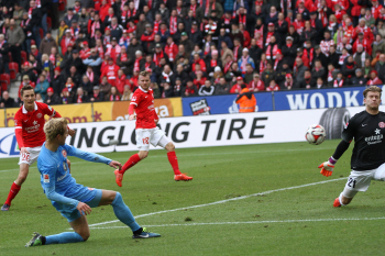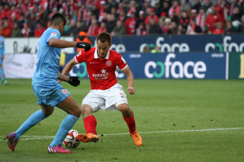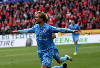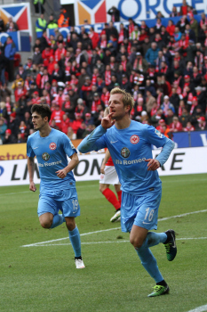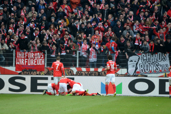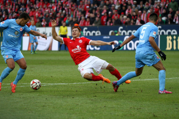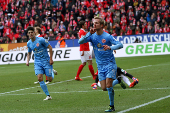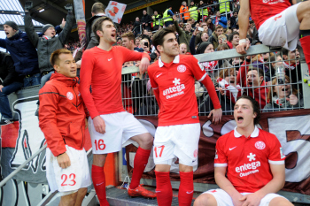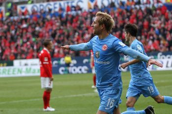 Schlussjubel bei Shinji Okazaki, Stefan Bell, Jairo Samperio und Julian Baumgartlinger (Mainz)