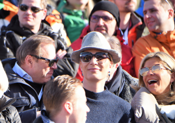 24.01.2020 Kitzbühel 80. Hahnenkamm Rennen 2020 - Ski Alpin Super-G der Herren Marcus Höfl und Maria Höfl-Riesch als Zuschauer auf der Tribüne : *** Foto Peter Hartenfelser ********* Foto: Peter Hartenfelser