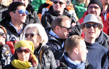 24.01.2020 Kitzbühel 80. Hahnenkamm Rennen 2020 - Ski Alpin Super-G der Herren Maria Höfl-Riesch als Zuschauer auf der Tribüne : *** Foto Peter Hartenfelser ********* Foto: Peter Hartenfelser