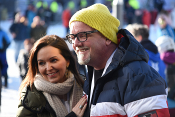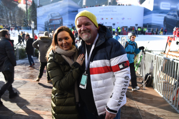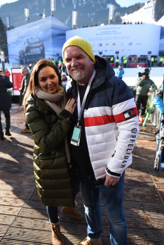 24.01.2020 Kitzbühel 80. Hahnenkamm Rennen 2020 - Ski Alpin Super-G der Herren Schlagersänger DJ Ötzi, alias Anton (Gerhard Friedle) mit Ehefrau Sonja : *** Foto Peter Hartenfelser ********* Foto: Peter Hartenfelser