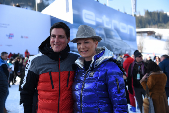 24.01.2020 Kitzbühel 80. Hahnenkamm Rennen 2020 - Ski Alpin Super-G der Herren getrennte Wege? vorne Jürgen B. Harder hinten links Lebensgefährtin Franziska van Almsick : *** Foto Peter Hartenfelser ********* Foto: Peter Hartenfelser