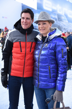 24.01.2020 Kitzbühel 80. Hahnenkamm Rennen 2020 - Ski Alpin Super-G der Herren Maria Höfl-Riesch mit Ehemann Marcus Höfl : *** Foto Peter Hartenfelser ********* Foto: Peter Hartenfelser