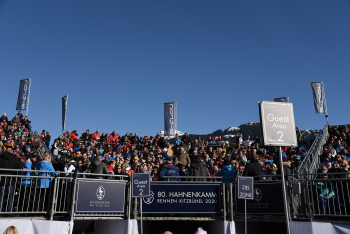 24.01.2020 Kitzbühel 80. Hahnenkamm Rennen 2020 - Ski Alpin Super-G der Herren Impressionen strahlend blauer Himmel freut die Zuschauer auf der Gästetribüne : *** Foto Peter Hartenfelser ********* Foto: Peter Hartenfelser