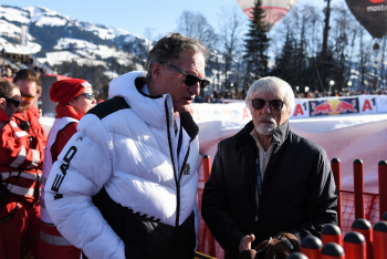 24.01.2020 Kitzbühel 80. Hahnenkamm Rennen 2020 - Ski Alpin Super-G der Herren Skilegende Franz Klammer mit Bernard Charles „Bernie“ Ecclestone britischer Automobilsport-Funktionär : *** Foto Peter Hartenfelser ********* Foto: Peter Hartenfelser