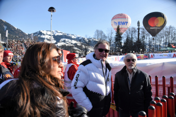 24.01.2020 Kitzbühel 80. Hahnenkamm Rennen 2020 - Ski Alpin Super-G der Herren Skilegende Franz Klammer Bernard Charles „Bernie“ Ecclestone britischer Automobilsport-Funktionär dahinter Ehefrau Fabiana Flosi mit Bodyguards : *** Foto Peter Hartenfelser ********* Foto: Peter Hartenfelser