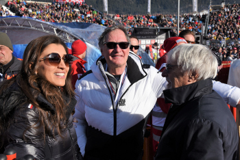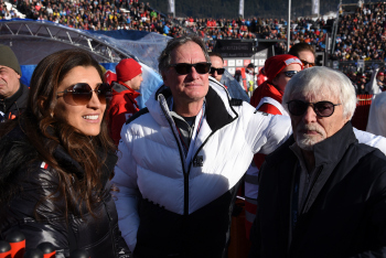 24.01.2020 Kitzbühel 80. Hahnenkamm Rennen 2020 - Ski Alpin Super-G der Herren Skilegende Franz Klammer dahinter Bernard Charles „Bernie“ Ecclestone britischer Automobilsport-Funktionär links Ehefrau Fabiana Flosi mit Bodyguards : *** Foto Peter Hartenfelser ********* Foto: Peter Hartenfelser