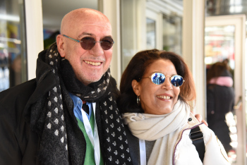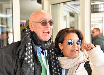 24.01.2020 Kitzbühel 80. Hahnenkamm Rennen 2020 - Ski Alpin Super-G der Herren Schauspieler Tobias Moretti mit Ehefrau Julia : *** Foto Peter Hartenfelser ********* Foto: Peter Hartenfelser