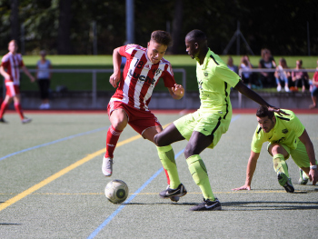 09.09.2018 Zeppelinheim Gruppenliga Saison 2018/2019 SV Pars Neu-Isenburg gegen SG Brucköbel Fatih Oezkan (SG Brucköbel) gegen Joav Mben Bata (Pars) ****** Foto: Peter Hartenfelser