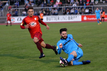 Patrick Albert (19, Spvgg. 03 Neu-Isenburg) gegen Tim Benedict Flie? (44, Hessen Dreieich)
