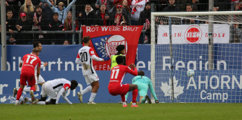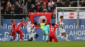 scheitern vor dem Tor von Torwart Nils Ramming (1, Eintracht Frankfurt II)