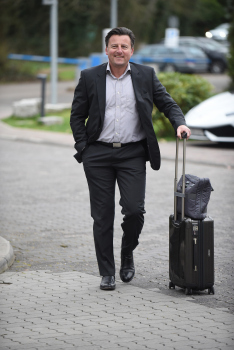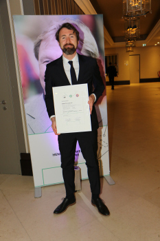 mit seiner Trainerurkunde,