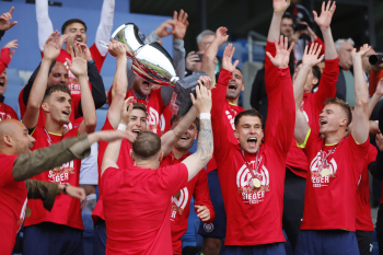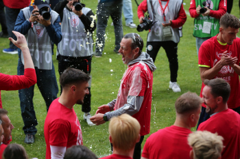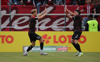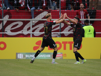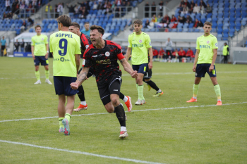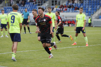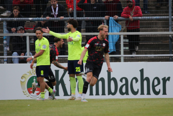 Torjubel von MAURICE SPRINGFELD (31, Hessen Kassel) nach dem Tor zum 1:1 Ausgleich von Tobias Boche (27, Hessen Kassel)