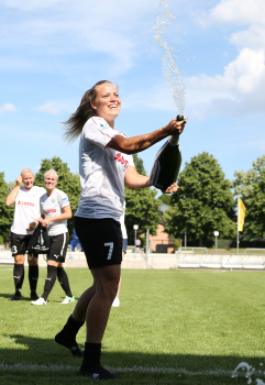 Margarita Gidion (FFC), Sektdusche, Feier, Freude, Jubel, Sekt