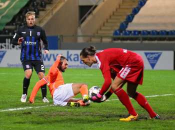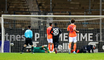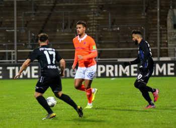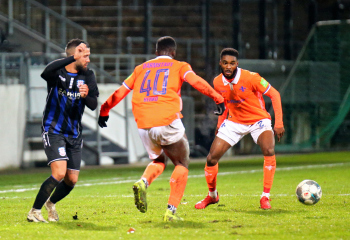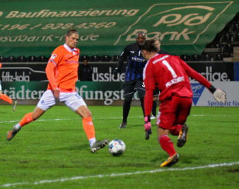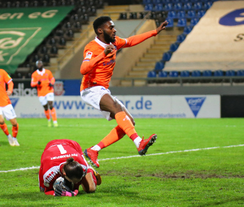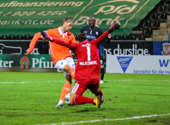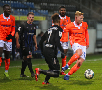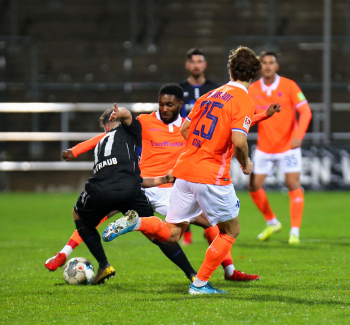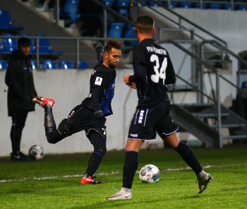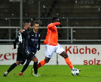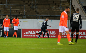 19.11.2019, xxx, Frankfurt, PSD Arena, Fussball, 2. Bundesliga, Regionalliga Suedwest, Testspiel, FSV Frankfurt gegen SV Darmstadt 98; Tor zum 1:0 durch Johannes Wurtz (SV Darmstadt 98); in der 16. Minute Jubel von Arif Gueclue (FSV Frankfurt), mit Luca Bazzoli (FSV Frankfurt),