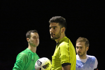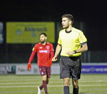 02.02.2018, xxx Fussball, Testspiel 2018, SC Hessen Dreieich Hessenliga - SV Viktoria Aschaffenburg Bayernliga Nord; v.l. Terran Tavasolli (Schiedsrichter)
