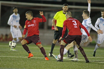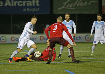 02.02.2018, xxx Fussball, Testspiel 2018, SC Hessen Dreieich Hessenliga - SV Viktoria Aschaffenburg Bayernliga Nord; v.l. Alban Lekaj (SC Hessen Dreieich), , Goekhan Aydin (SV Viktoria Aschaffenburg),