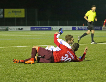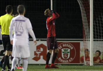 02.02.2018, xxx Fussball, Testspiel 2018, SC Hessen Dreieich Hessenliga - SV Viktoria Aschaffenburg Bayernliga Nord; v.l. Yves Boettler(SC Hessen Dreieich), verzweifelt