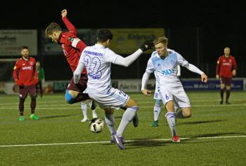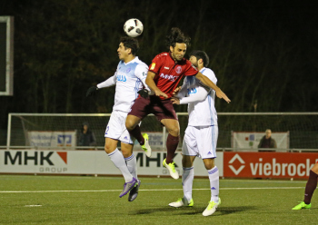 02.02.2018, xxx Fussball, Testspiel 2018, SC Hessen Dreieich Hessenliga - SV Viktoria Aschaffenburg Bayernliga Nord; v.l. Ali Zaeteri (SV Viktoria Aschaffenburg),Khaibar Amani (SC Hessen Dreieich), Hamza Boutakhrit (SV Viktoria Aschaffenburg),