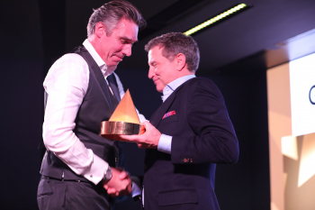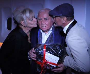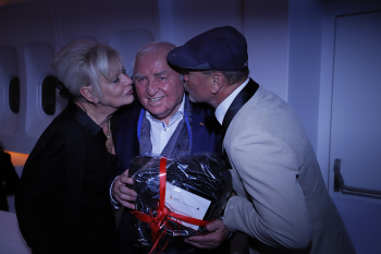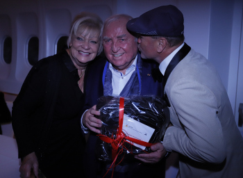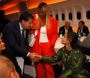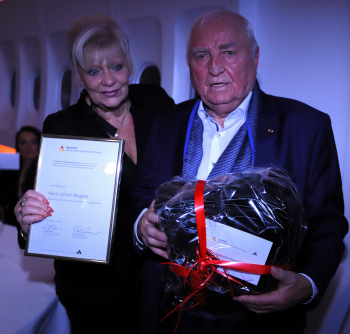 Christian Seifert, Vorsitzender des Aufsichtsrats Stiftung Deutsche Sporthilfe begrüsst Kristina Vogel (Bahnradsport), dahinter Franziska van Almsick, Schwimmen,